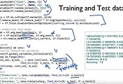한자리씩 따지면 784자리가 됩니다. 그리고 None 은 우리가 원하는 갯수 만큼을 넣을 수 있다는 것입니다. 소프트 맥스에서 원핫 인코딩을 사용했습니다. 10개의 출력을 나타내게 됩니다. 이런 형태의 처리 해야 하는데. 복잡하기 때문에. 텐서플로에서 임포트를 하고, 디렉토리를 지정해줍니다. 이렇게 해서 데이터를 읽었으면 트레이닝 하고 넷스트 100개 하면, 100개의 엑스와 와이 트레닝 데이터가 얻어집니다. 원핫을 트루두 두면 원핫으로 처리한다는 것을 알 수 있습니다. 클래스가 10개가 되니다. 엑스와 와이가 784가 왜나왔는지. 몇개 출력인가를 따라서 정해집니다. 엑스 와이가 정해졌으면 간단한 소프트맥스 클래스 파이어를 사용합니다. 더블유의 쉐이프를 신경씁니다. 그리고 바이어스도 신경씁니다. 입력이 몇개인가 나가는 것이 몇개인가를 명확히 합니다.